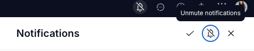 If you find the bell distracting, you can mute it by opening the Notifications panel and clicking the bell icon at the top. Click it again to unmute. While muted, the bell will appear with a strikethrough and your notification count will not update. Note that muting the bell also pauses push and email notifications.
